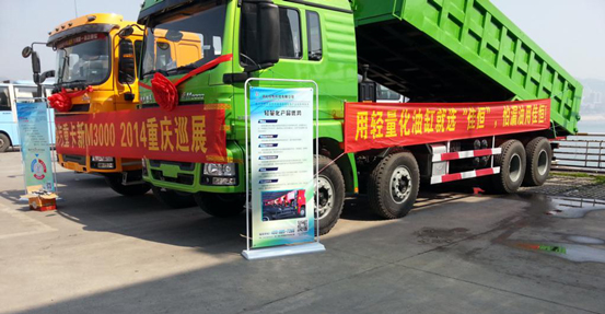喜慶的紅色條幅上寫著“陜汽重卡新M3000-2014重慶巡展”、“用輕量化油缸就選佳恒,怕漏油用佳恒!”、“陜汽德龍新M3000攜手佳恒油缸為您創(chuàng)造財(cái)富!”,在展區(qū)格外引人注目,車輛上裝的正是由佳恒公司自主開發(fā)的輕量化套筒液壓缸,市場(chǎng)銷量可觀,倍受客戶的青睞。